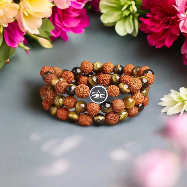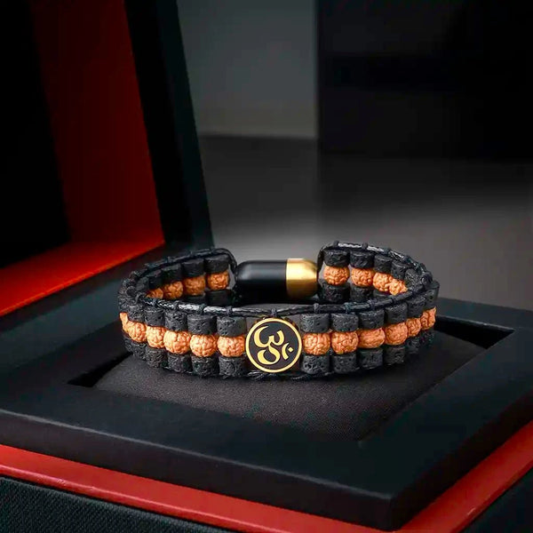 The Monumental Courage Shiva Rudraksha Bracelet: Interlacing Rudraksha beads with symbolic components to instill courage.