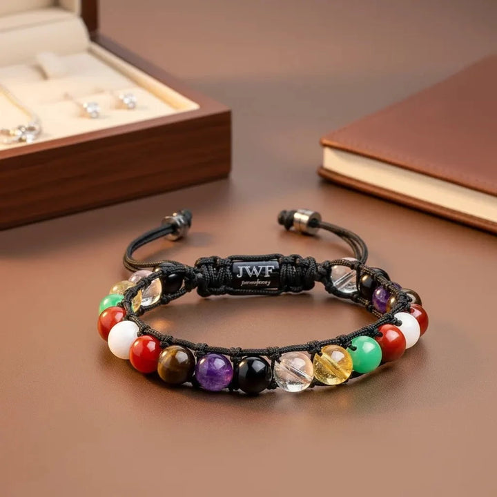 This bracelet was designed to bring those energies back into alignment. Each stone resonates with a planet and a chakra, creating a bridge between cosmic influence and inner balance:
