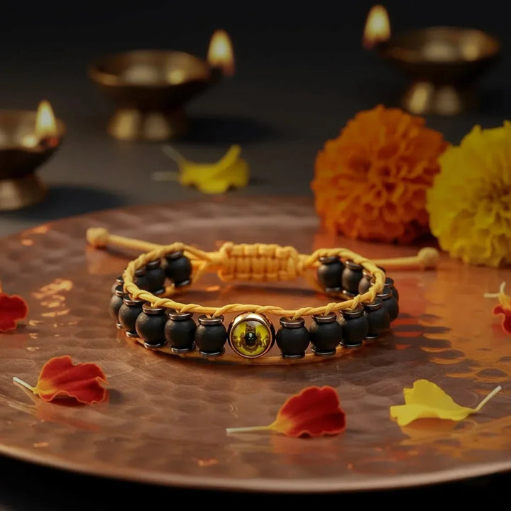 The Karungali bead has been chosen for a reason. It connects with the root chakra Muladhara Chakra — the foundation of strength, focus, and stability. It helps keep your energy grounded, your thoughts steady, and your purpose clear