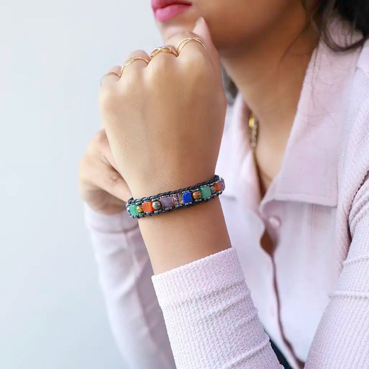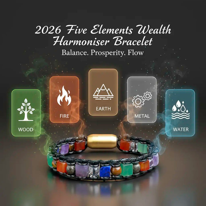 This isn't just a bracelet; it's your 2026 success plan. Built on the Wuxing principle, this exclusive in-house design features seven authentic crystals, including Pyrite for wealth, Carnelian for motivation, and Amethyst & Clear Quartz to amplify your intentions. Secured with a premium magnetic clasp.