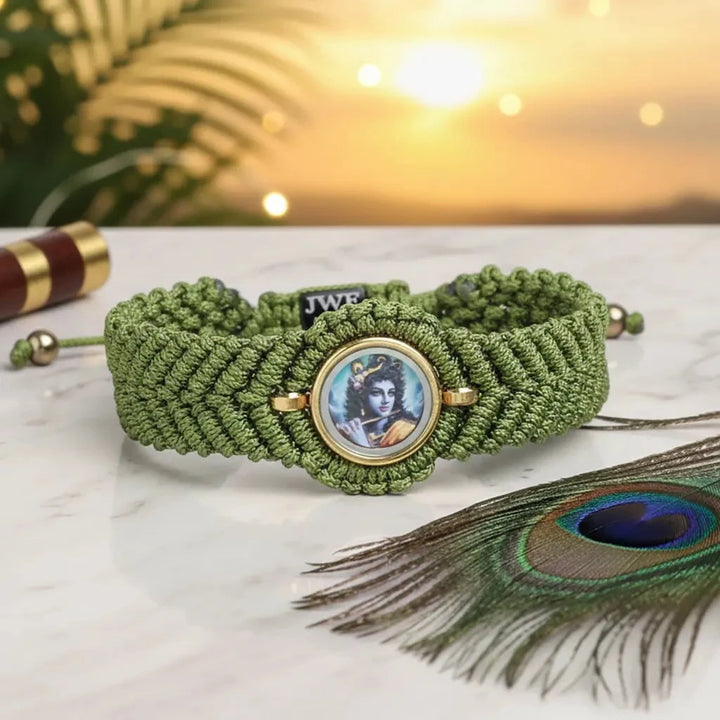 In honour of every devotee of Krishna, we present this thread bracelet—handwoven with intention, bound by karma, and crafted to let love manifest in every form