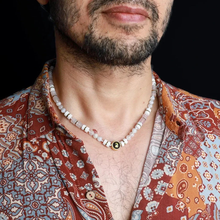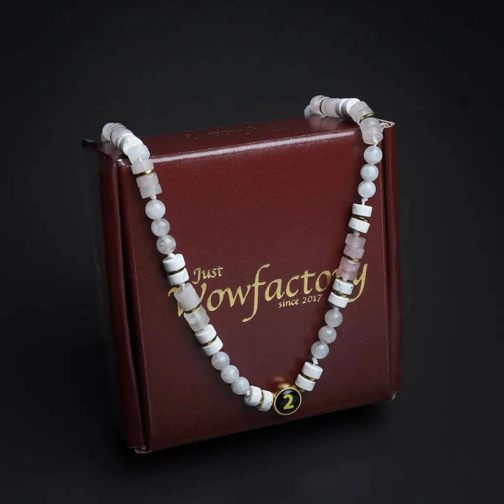 Aligned with the Moon, Moolank 2 embodies empathy, emotional wisdom, and quiet strength. This necklace weaves together Moonstone, Howlite, and Rose Quartz — for those who lead with heart and stay rooted in softness, not weakness.