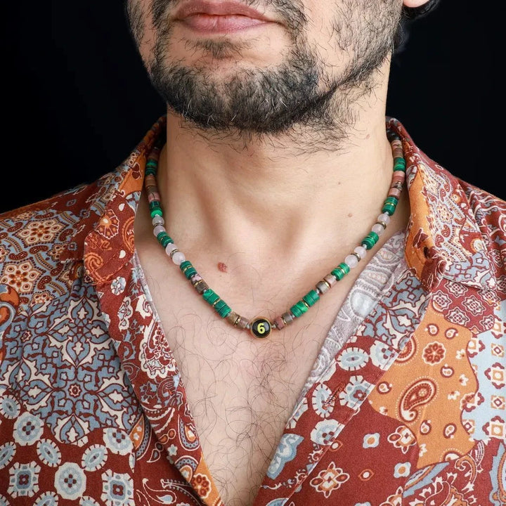 This necklace was created to embody the nurturing and graceful spirit of Moolank 6. The centerpiece, a polished ball engraved with the number 6, symbolises love, harmony, and responsibility. Each bead is natural and authentic, chosen to bring both beauty and meaning into a piece that reminds the wearer of their gentle strength and guiding heart.