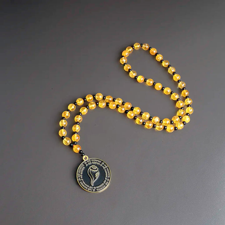 108 Mala Agate Citrine Mala With Om Namo Bhagwate Pendant