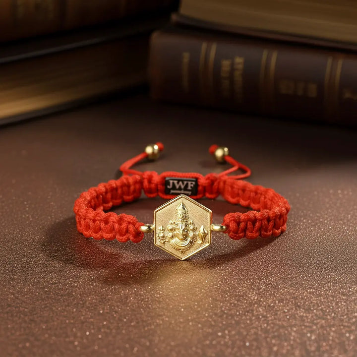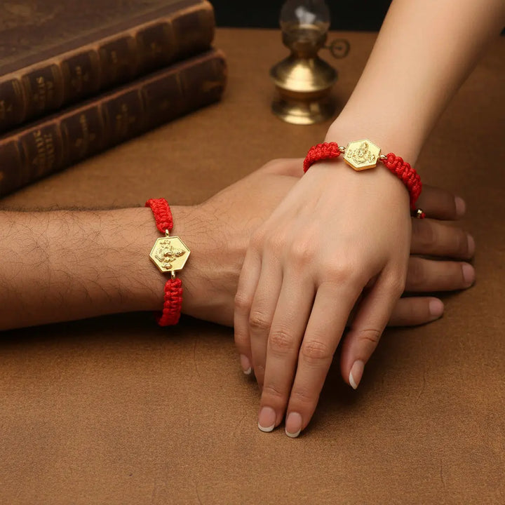 Sacred Invitation Shri Balaji 18k Gold-Plated Red String Bracelet