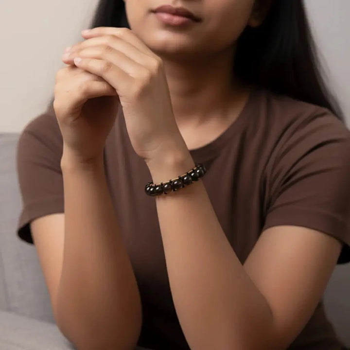 This bracelet is crafted for those who seek calm within movement and clarity within noise. Its subtle, dusky glow speaks of resilience — not in loud declarations, but in quiet assurance that you are supported and steady. To wear it is to claim balance, to root yourself deeply, and to move forward with calm determination