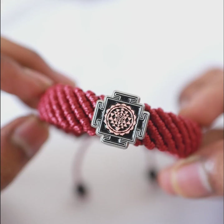 Maroon reflects discipline and inner stability. Threaded with intention, this bracelet centers the Sriyantra — quintessence of abundance and energy balance.
